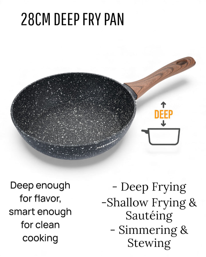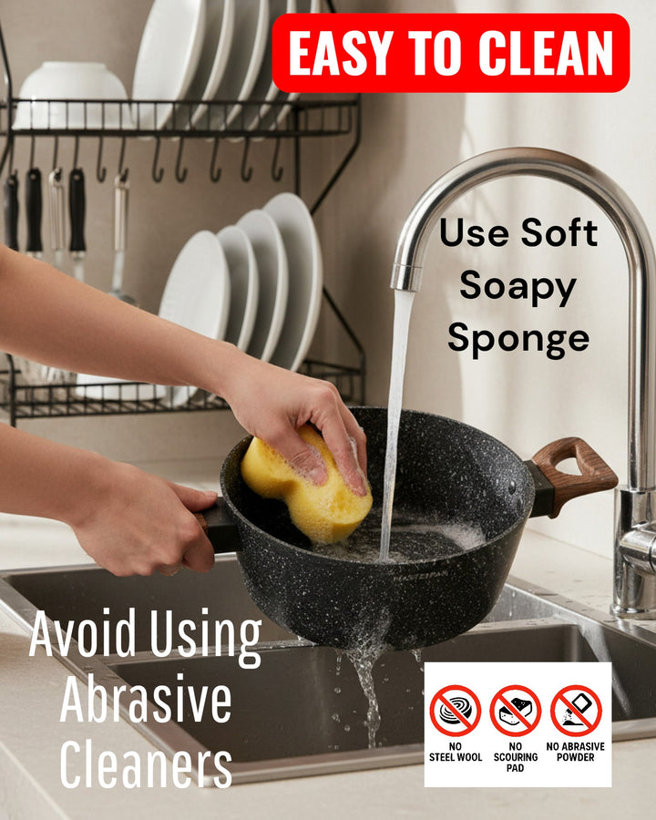 - Interior Finish: Black with white marble dots, featuring high-resistance coating for easy cleaning and long-lasting use.