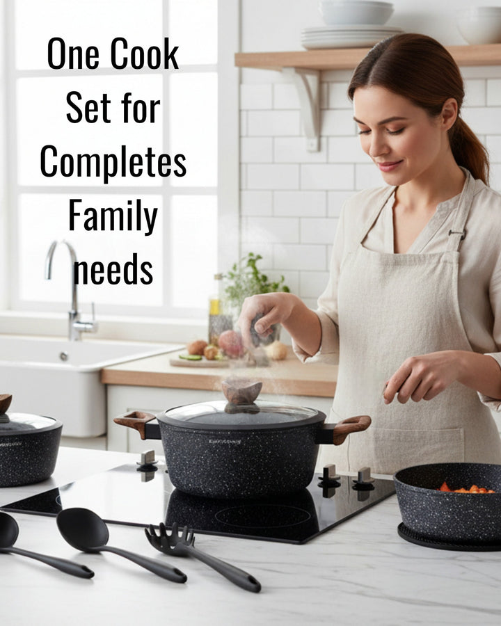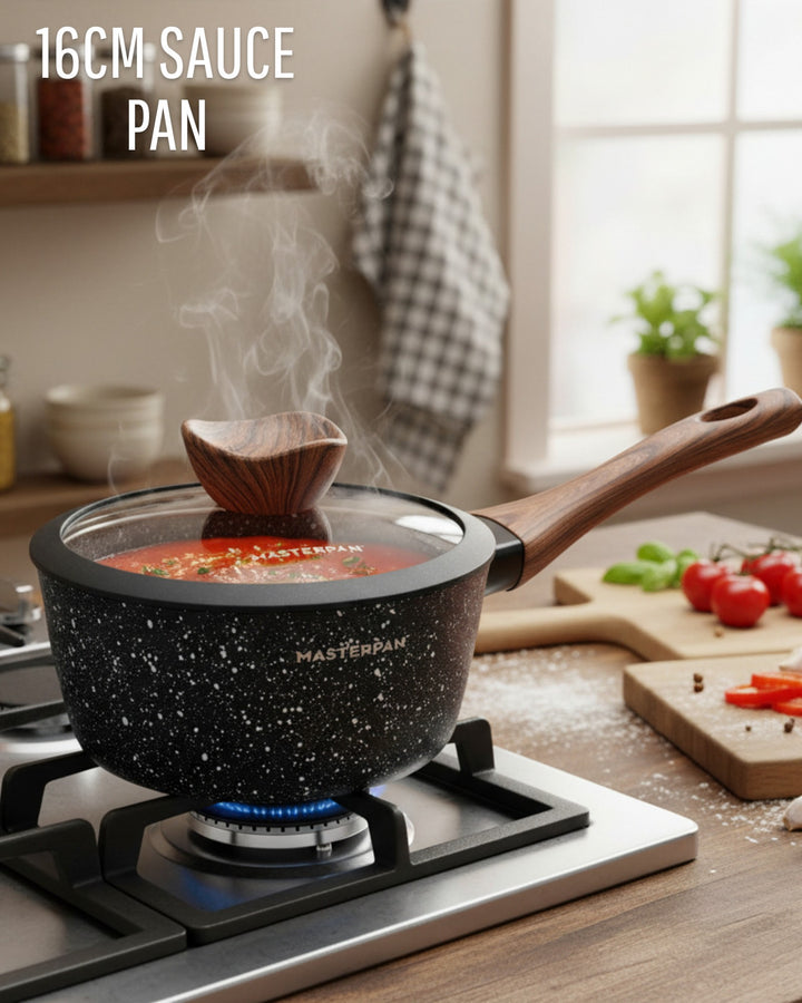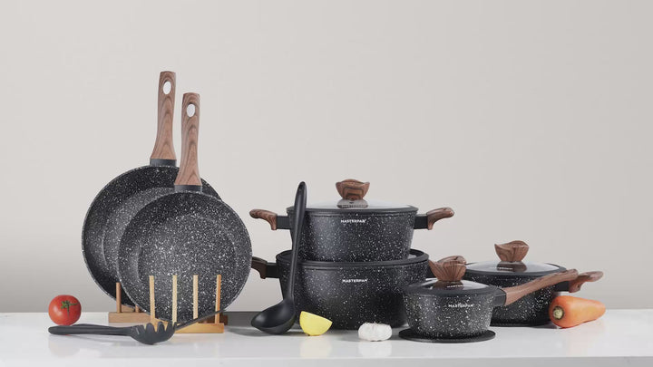 Upgrade your kitchen with the Masterpan 15-Piece Cookware Set, crafted from forged aluminium for superior strength, even heat distribution, and long-lasting durability. Perfect for every cooking style, this set combines functionality with modern design.