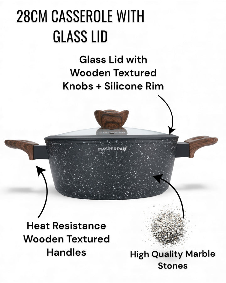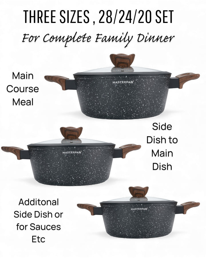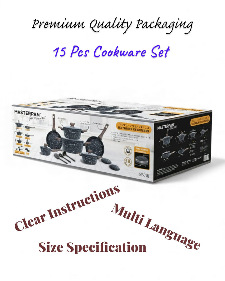 With its combination of durable construction, stylish marble design, and practical features, the Masterpan 15-Piece Cookware Set – MP-7001 is perfect for home chefs who value both performance and elegance.