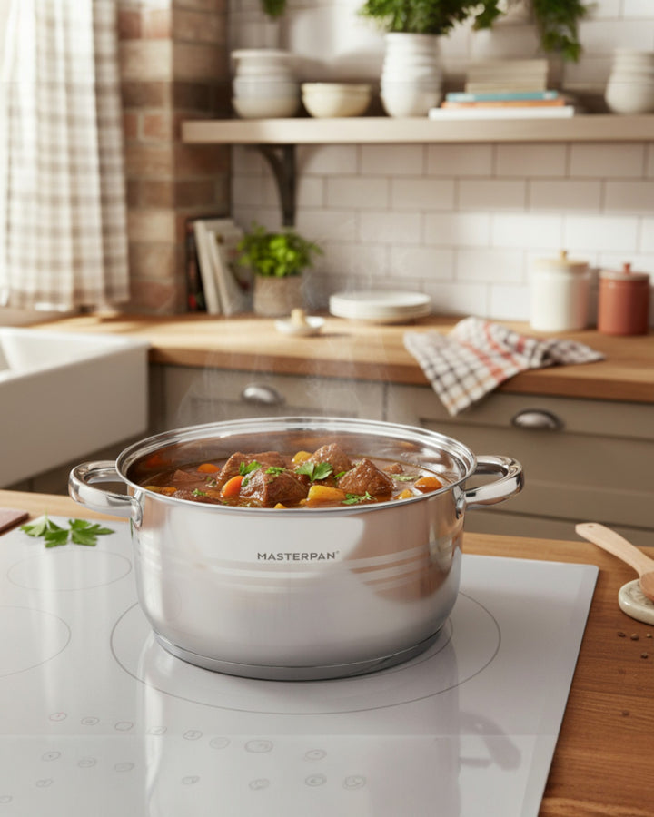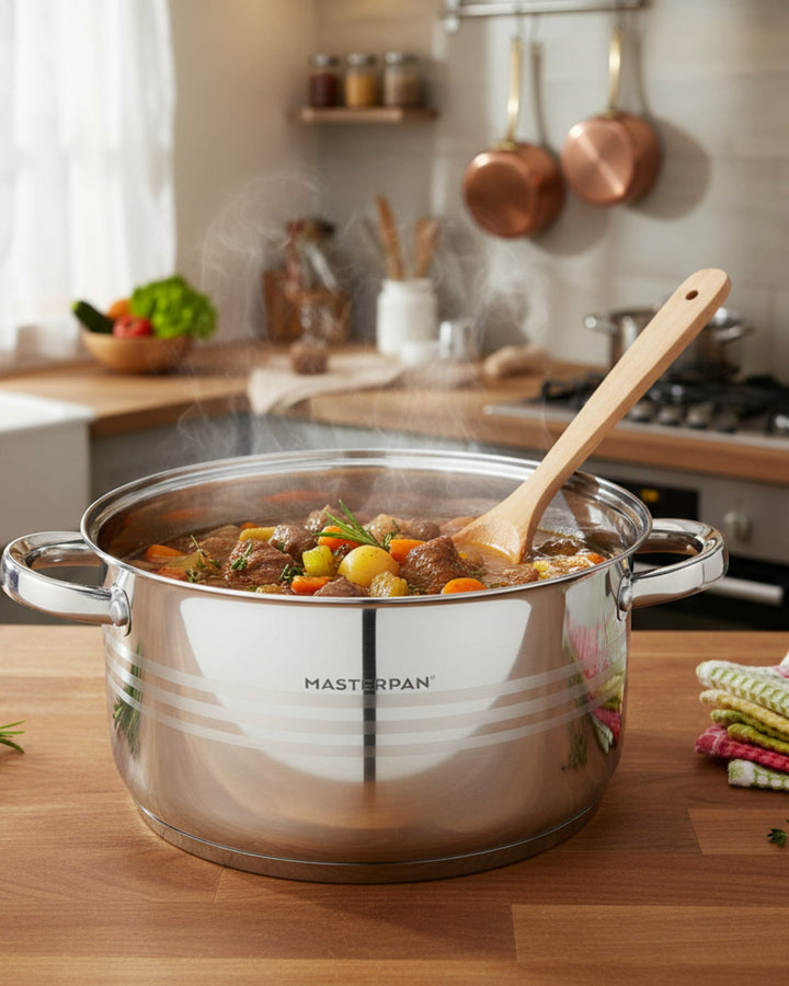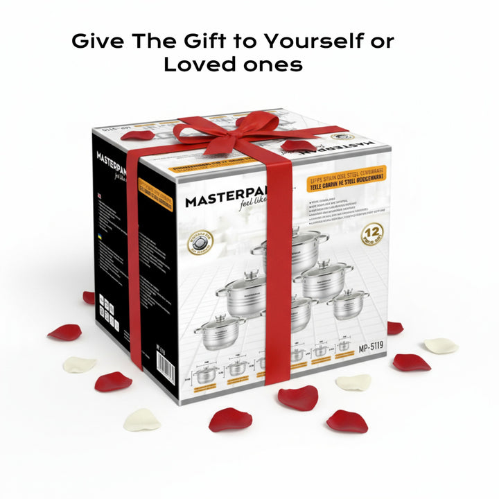 Erweitern Sie Ihre kulinarische Reise mit dem 12-teiligen Kochgeschirrset von Masterpan, einem umfassenden Set, das all Ihre Kochbedürfnisse erfüllt und Sie zu kulinarischen Höchstleistungen inspiriert. Dieses Set enthält eine Reihe wichtiger Kochgeschirrteile, die alle sorgfältig gefertigt wurden, um Ihr Kocherlebnis zu verbessern und Komfort in Ihre Küche zu bringen.