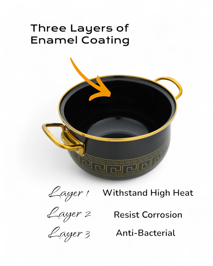 Whether you're simmering, stewing, or baking, this enamel casserole set is crafted to fulfill all your cooking needs with elegance and practicality.