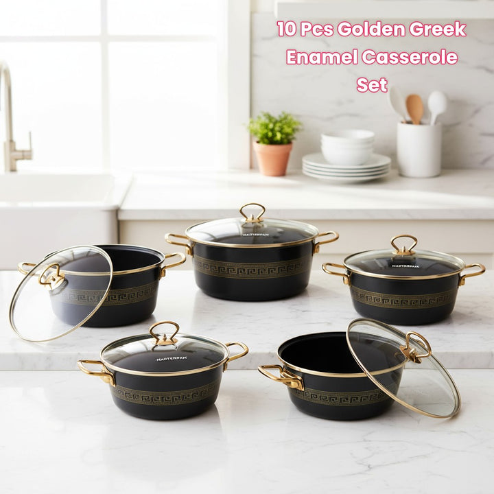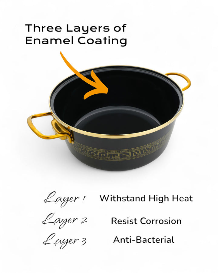Elevate your cooking experience with our 10PCS Enamel Casserole Set, designed for both functionality and style. Each piece is crafted from durable 0.8mm carbon steel and features a premium enamel coating on the inside and outside, complemented by an elegant decal on the exterior.