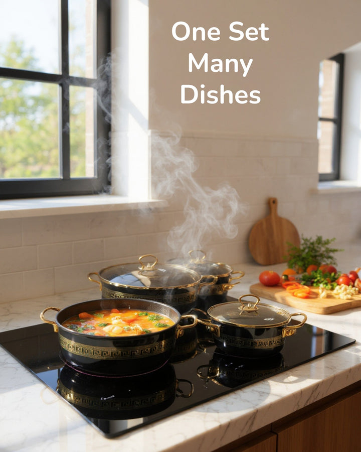 - Induction Base: The set is equipped with an induction-compatible base, making it suitable for all types of stovetops.