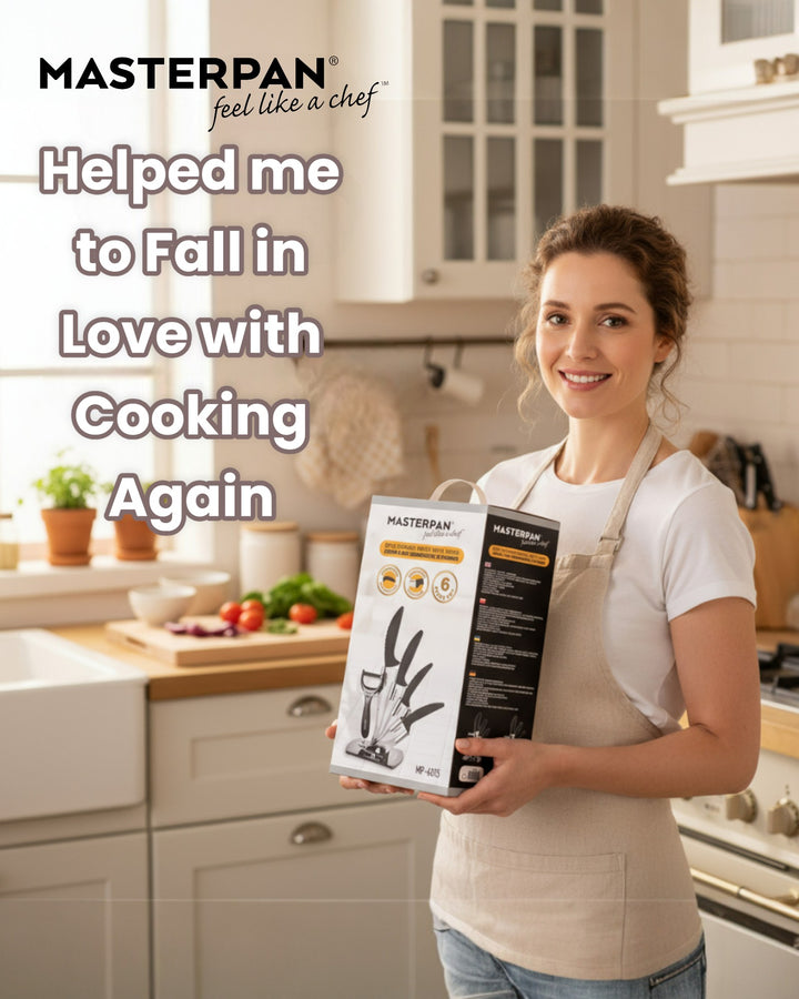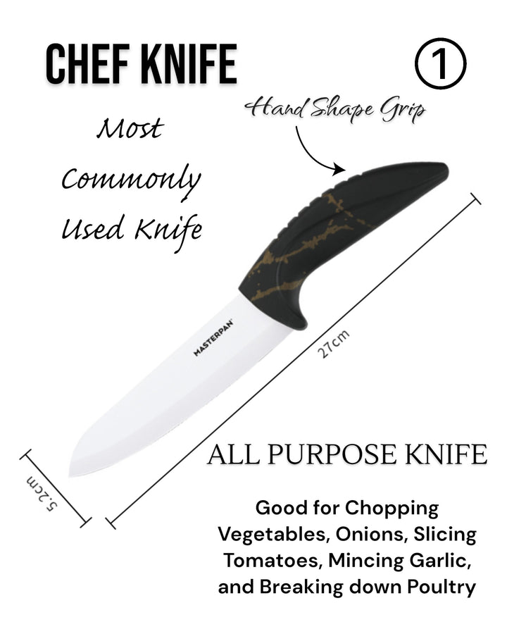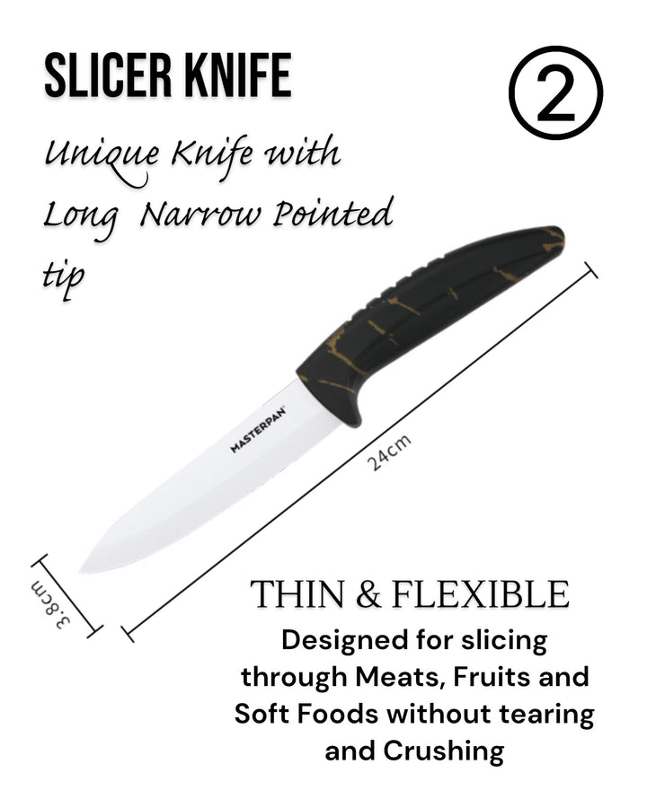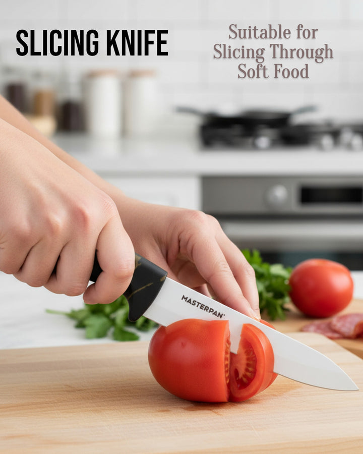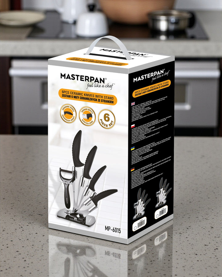 Upgrade your kitchen with the Masterpan MP-6016 Ceramic Knife Set – a perfect mix of style, sharpness, and everyday convenience. Each knife features a white ceramic blade that stays sharp longer and ergonomic PP handles with a modern design for a comfortable grip. Lightweight and easy to use, this set makes slicing, chopping, and peeling effortless.