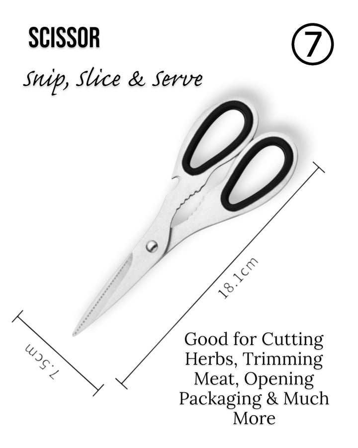 - Steel Scissor: Multipurpose tool for kitchen and household use.
