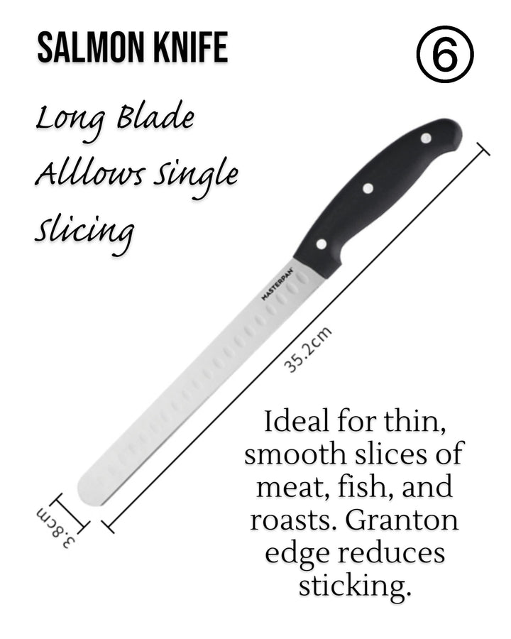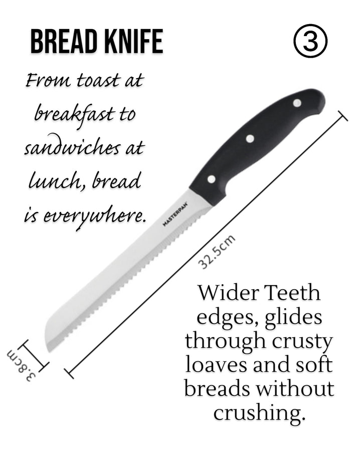 - 8.5" Bread Knife – Serrated edge for perfect bread and pastry cuts