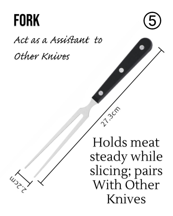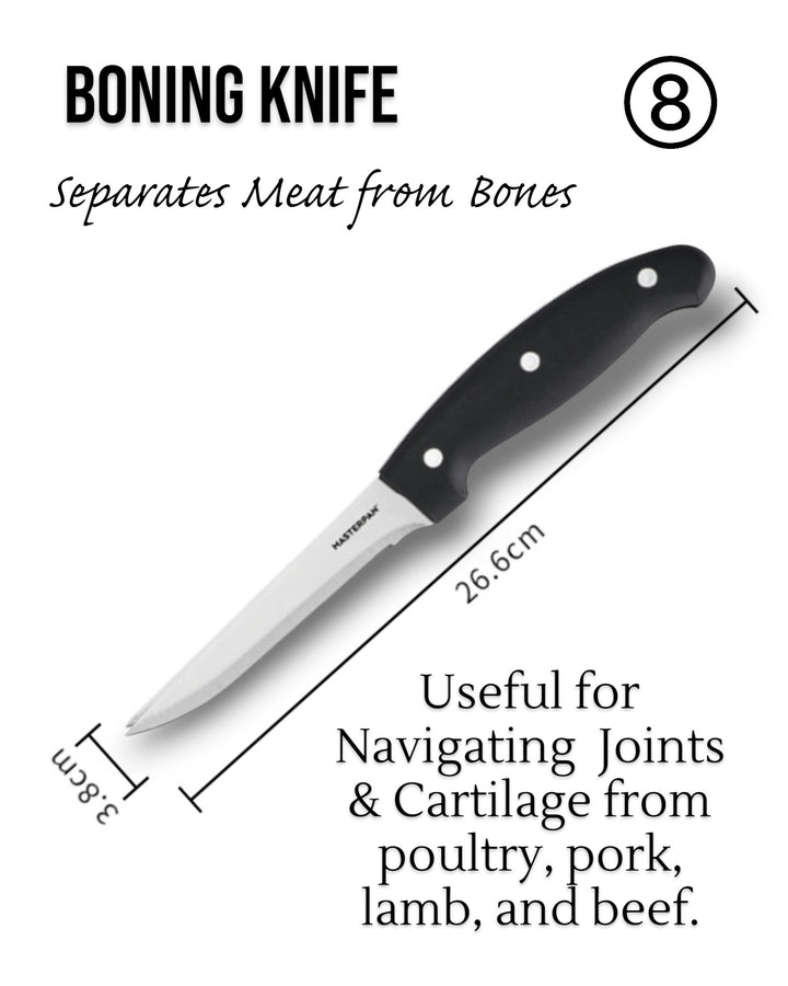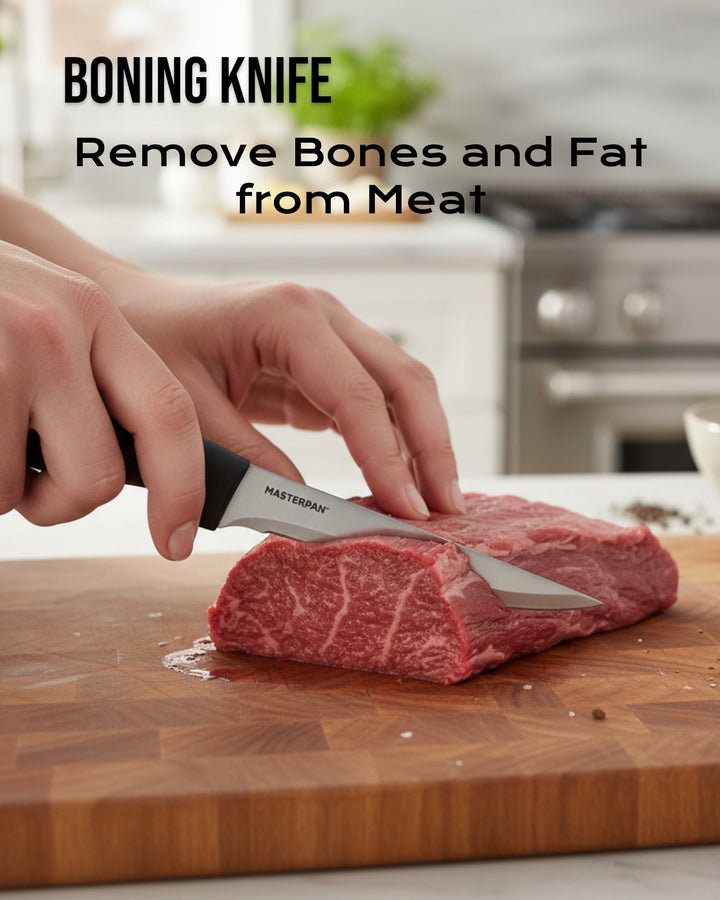 - 5" Boning Knife – Flexible blade for trimming and deboning