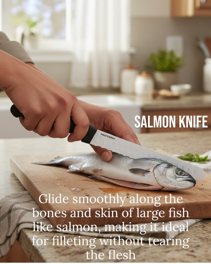 - 10" Salmon Knife – Thin, sharp blade for delicate filleting