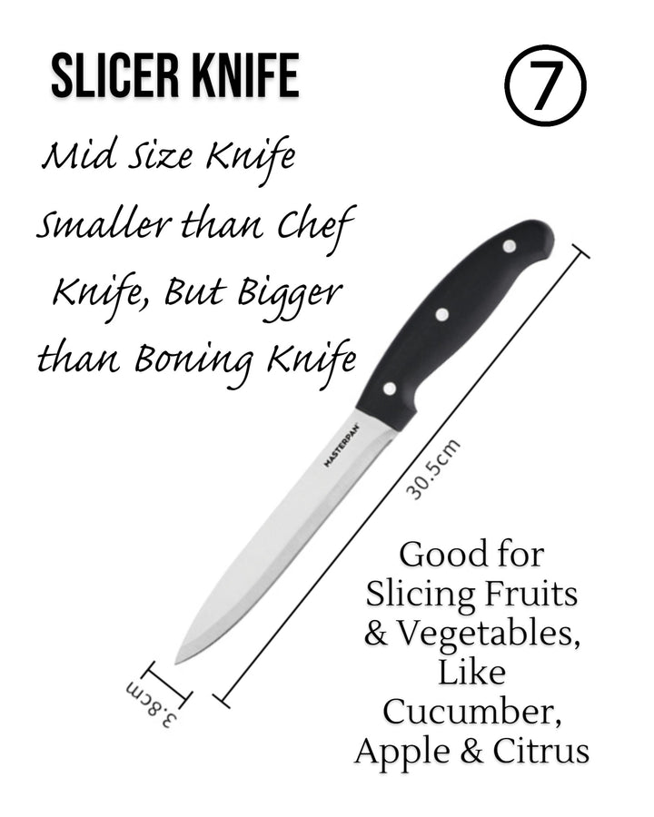 - 7" Slicer Knife – Great for smooth, clean slicing of meats