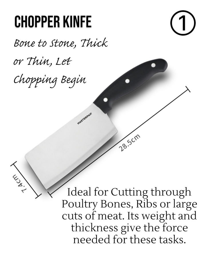- 6.5" Chopper Knife – Heavy-duty blade for effortless chopping and dicing