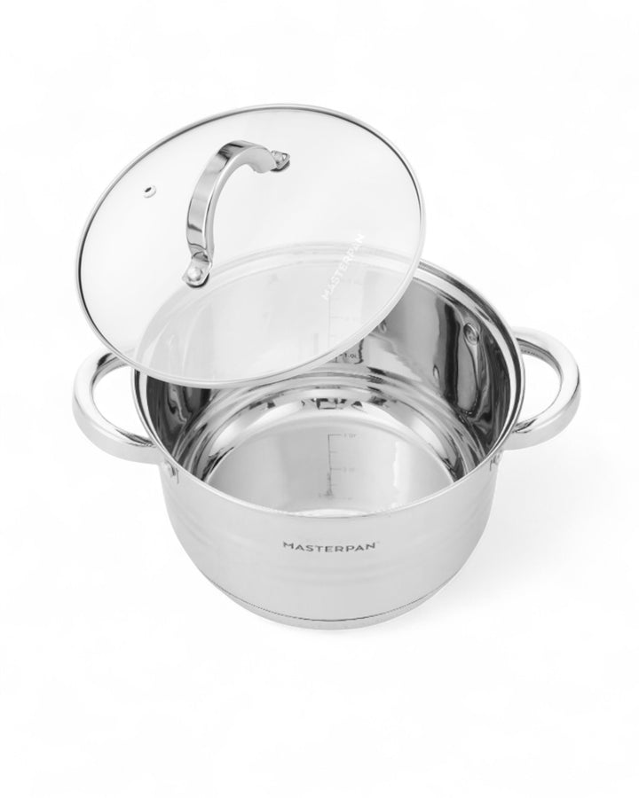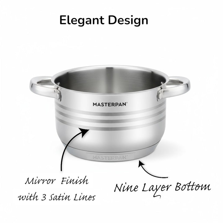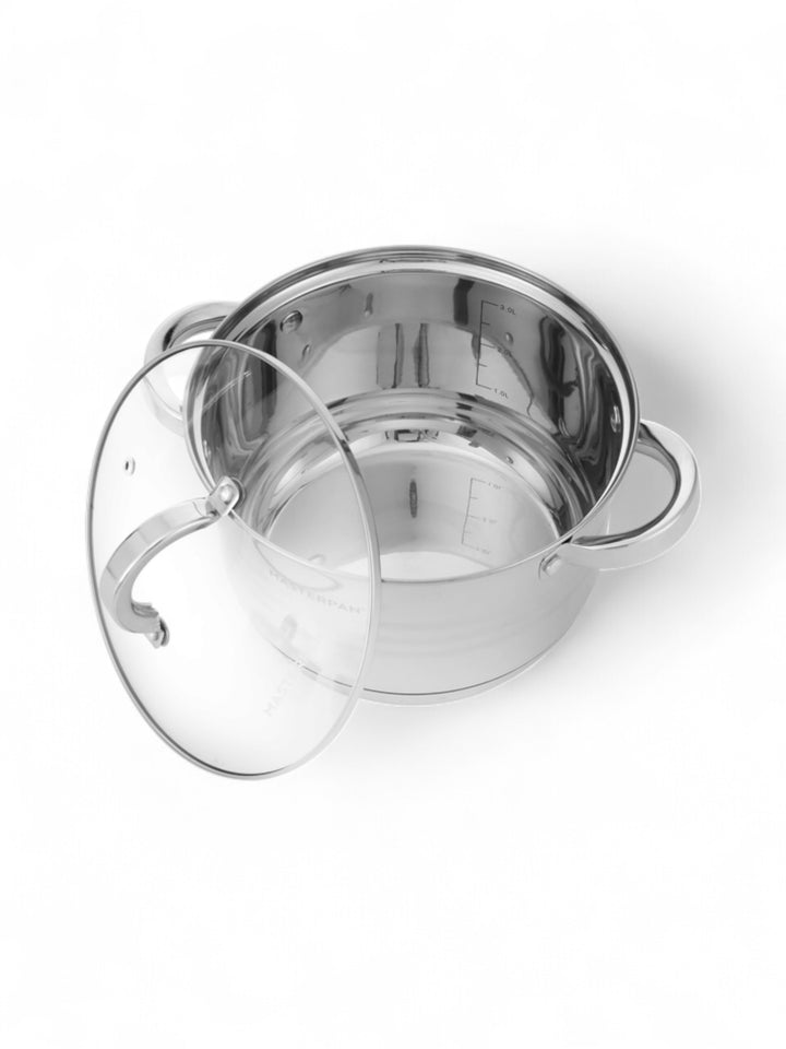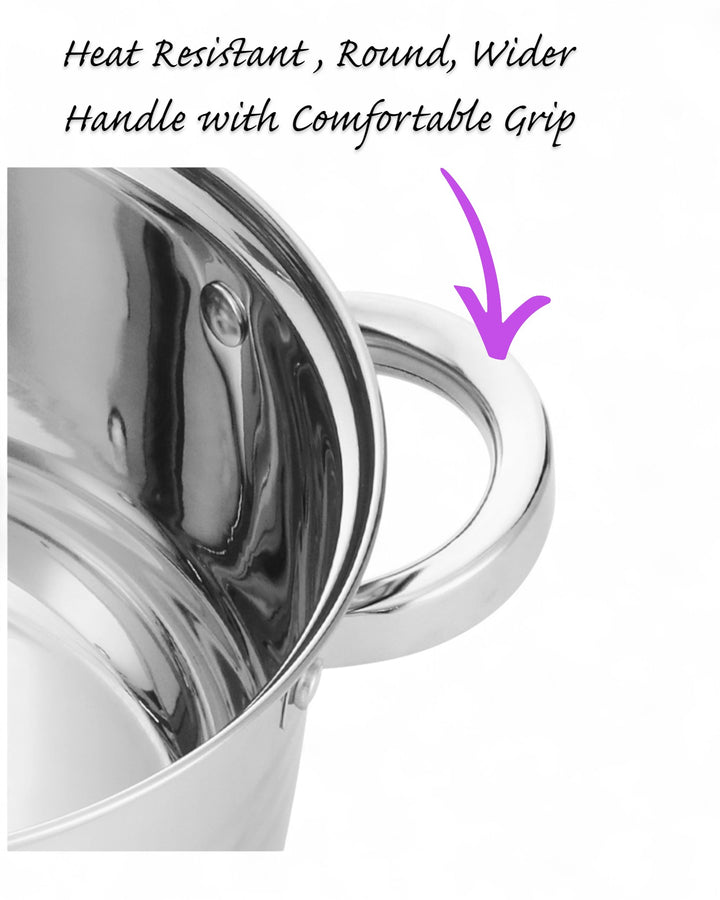Aesthetically pleasing, the exterior boasts a mirror finish adorned with three elegant satin lines, while the laser-engraved logo adds a touch of sophistication. Inside, the mirror-polished surface not only enhances its visual appeal but also features convenient capacity markings for effortless meal preparation.